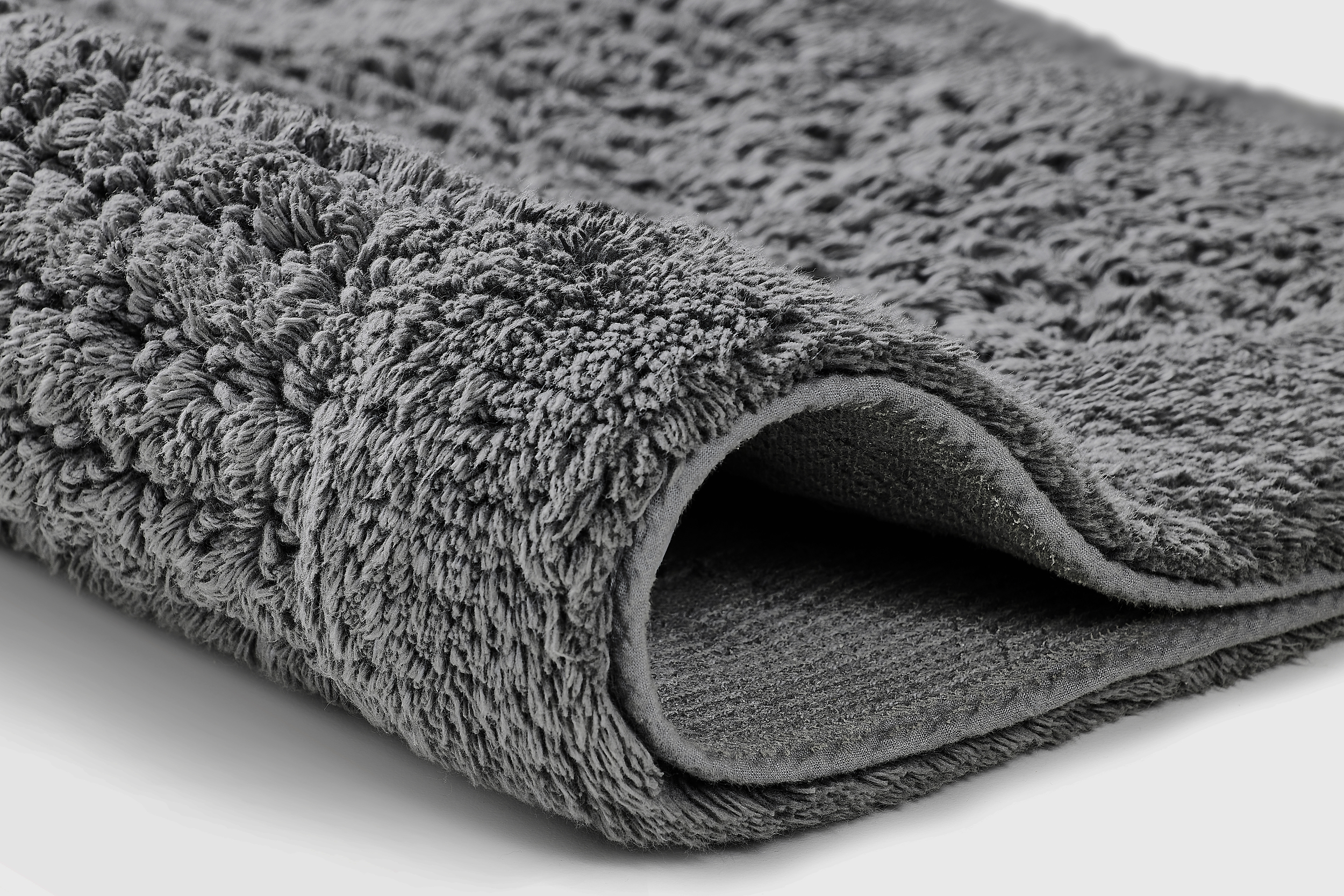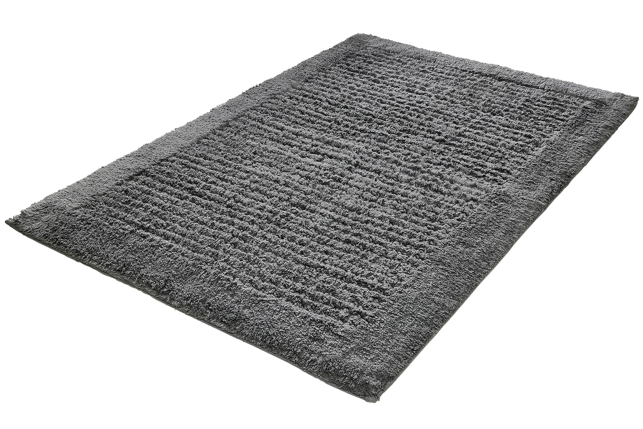 Erleben Sie den stilvollen Badteppich NET in der Farbe Schiefer, perfekt abgestimmt auf die Ästhetik Ihres Badezimmers. Mit einer Breite von 70 cm und einer Länge von 120 cm bietet dieser Teppich eine komfortable und weiche Oberfläche mit Florhöhen zwischen 12 und 17 mm. Hergestellt aus hochwertiger 100% Baumwolle, garantiert er sowohl Bequemlichkeit als auch Strapazierfähigkeit und einfache Pflege. Der Teppich ist maschinenwaschbar bei bis zu 40°C im Schonwaschgang und trocknergeeignet bei niedriger Temperatur. Eine rutschfeste Unterseite bietet erhöhte Sicherheit auf glatten Badezimmeroberflächen, während die Eignung für Fußbodenheizung zusätzlichen Komfort verspricht. Das Design überzeugt durch eine strukturierte Oberfläche mit einem elegant gerahmten Aussehen, das durch einen feinen Rand und einen robust gewebten Mittelteil ergänzt wird, um eine attraktive Textur zu schaffen.