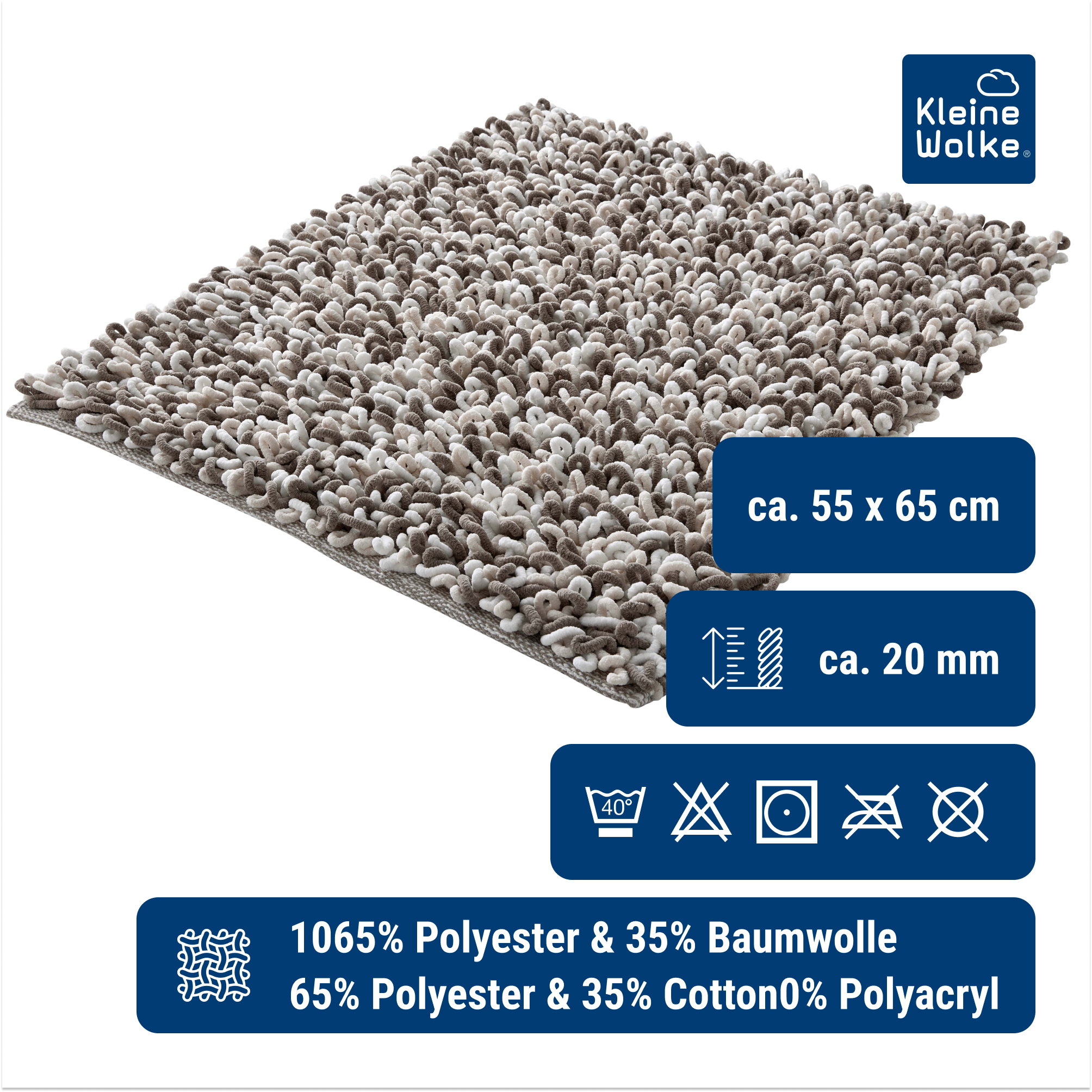 Erleben Sie den luxuriösen Komfort und die stilvolle Ausstrahlung des Badteppichs SLING in der Nuance Macadamia. Mit seinen Maßen von 55 cm Breite und 65 cm Länge passt er perfekt in jedes Badezimmer. Eine Florhöhe von 20 mm sorgt für eine außergewöhnlich weiche Beschaffenheit, die Ihre Füße verwöhnt. Der Teppich besteht aus einer erstklassigen Zusammensetzung von 65% Polyester und 35% Baumwolle, was ihm eine hohe Haltbarkeit sowie Pflegeleichtigkeit verleiht. Er entspricht dem Oeko-Tex Standard 100, was Ihnen versichert, dass er frei von schädlichen Stoffen ist und somit umwelt- sowie hautfreundlich bleibt. Zudem ist der Teppich maschinenwaschbar bei 40°C im Schonwaschgang und trocknergeeignet bei niedriger Temperatur. Eine Anti-Rutsch-Beschichtung auf der Unterseite garantiert sicheren Halt auf glatten Oberflächen, während seine Eignung für Räume mit Fußbodenheizung zusätzliche Flexibilität bietet. Das Design kombiniert helle und dunkle Grautöne zu einer ansprechenden, flauschigen Textur.