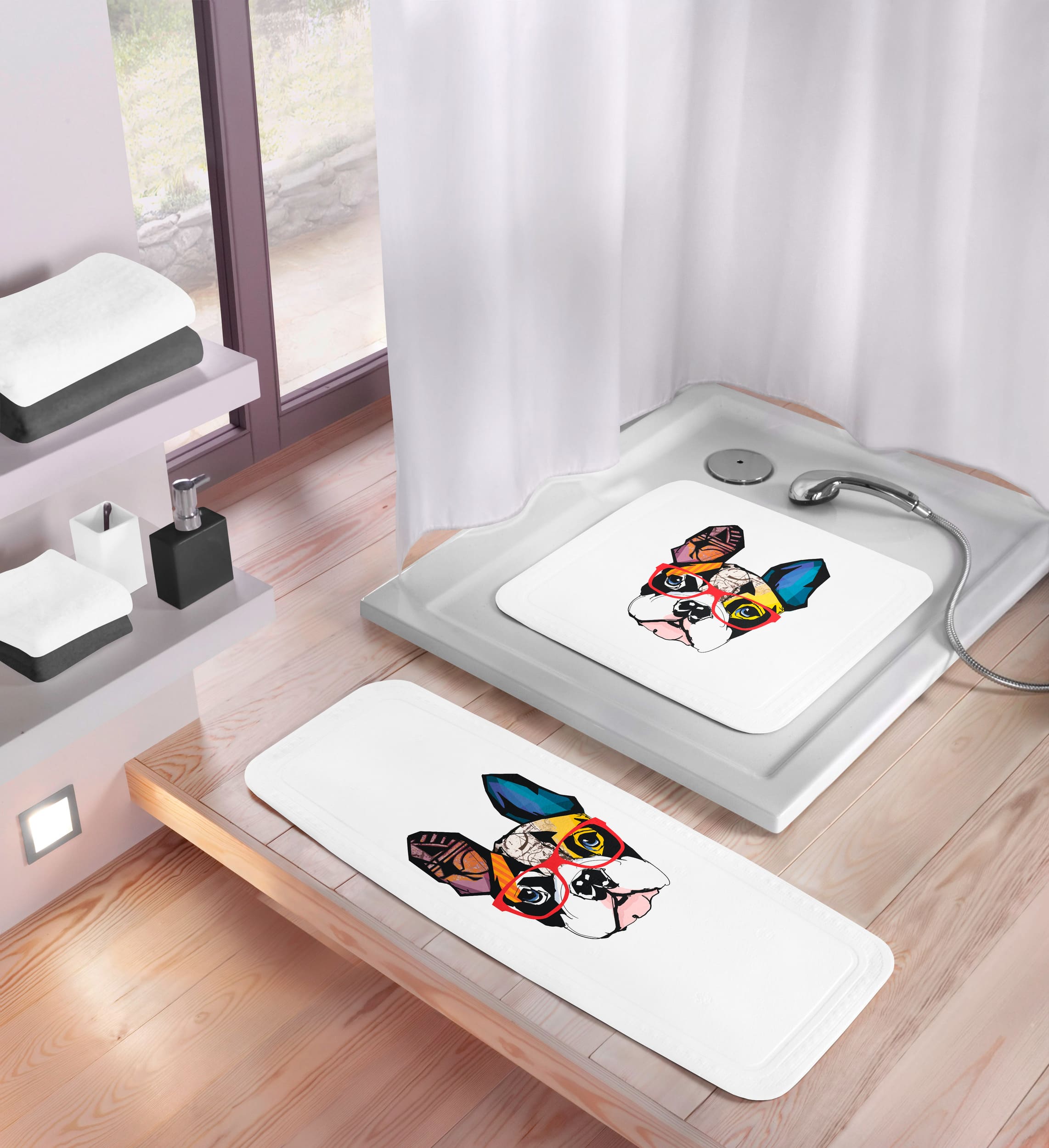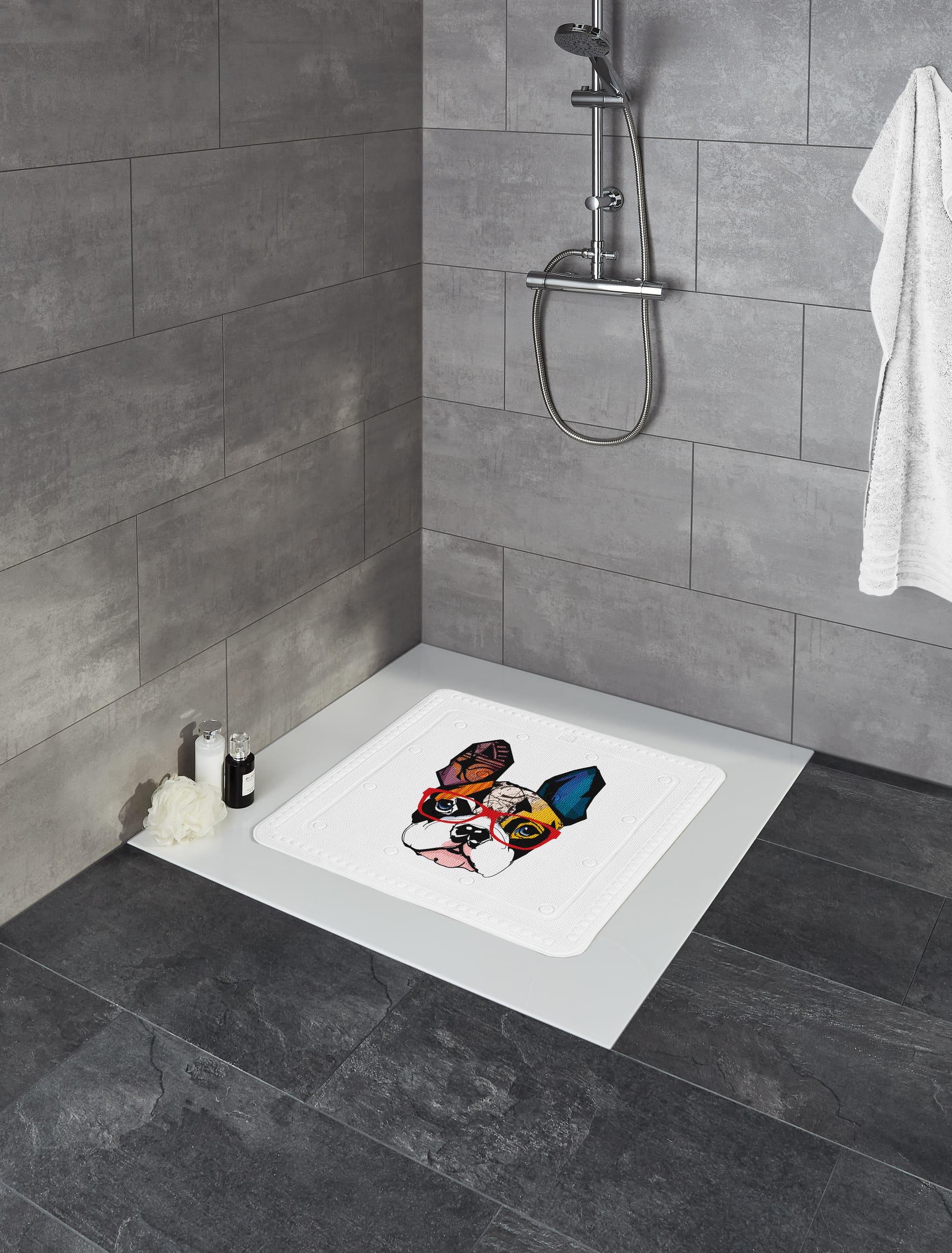 Entdecken Sie die farbenfrohe Duscheinlage "HENRY" aus hochwertigem PVC, die nicht nur praktisch, sondern auch ein echter Hingucker in Ihrem Badezimmer ist. Mit einer Größe von ca. 55x55 cm bietet diese Duscheinlage ausreichend Fläche für einen sicheren Stand während Ihrer Duschroutine. Das lebendige Multicolor-Design, verziert mit einem fröhlichen Hundemotiv, bringt Leben in jedes Badezimmer. Die Oberfläche ist geriffelt, um das Ausrutschen zu minimieren. Für eine einfache Reinigung ist die Matte waschbar bei 40 Grad und dank der zahlreichen Saugnäpfe bleibt sie fest an ihrem Platz. Eine praktische Öse ermöglicht es, die Duscheinlage zum Trocknen und Verstauen einfach aufzuhängen.