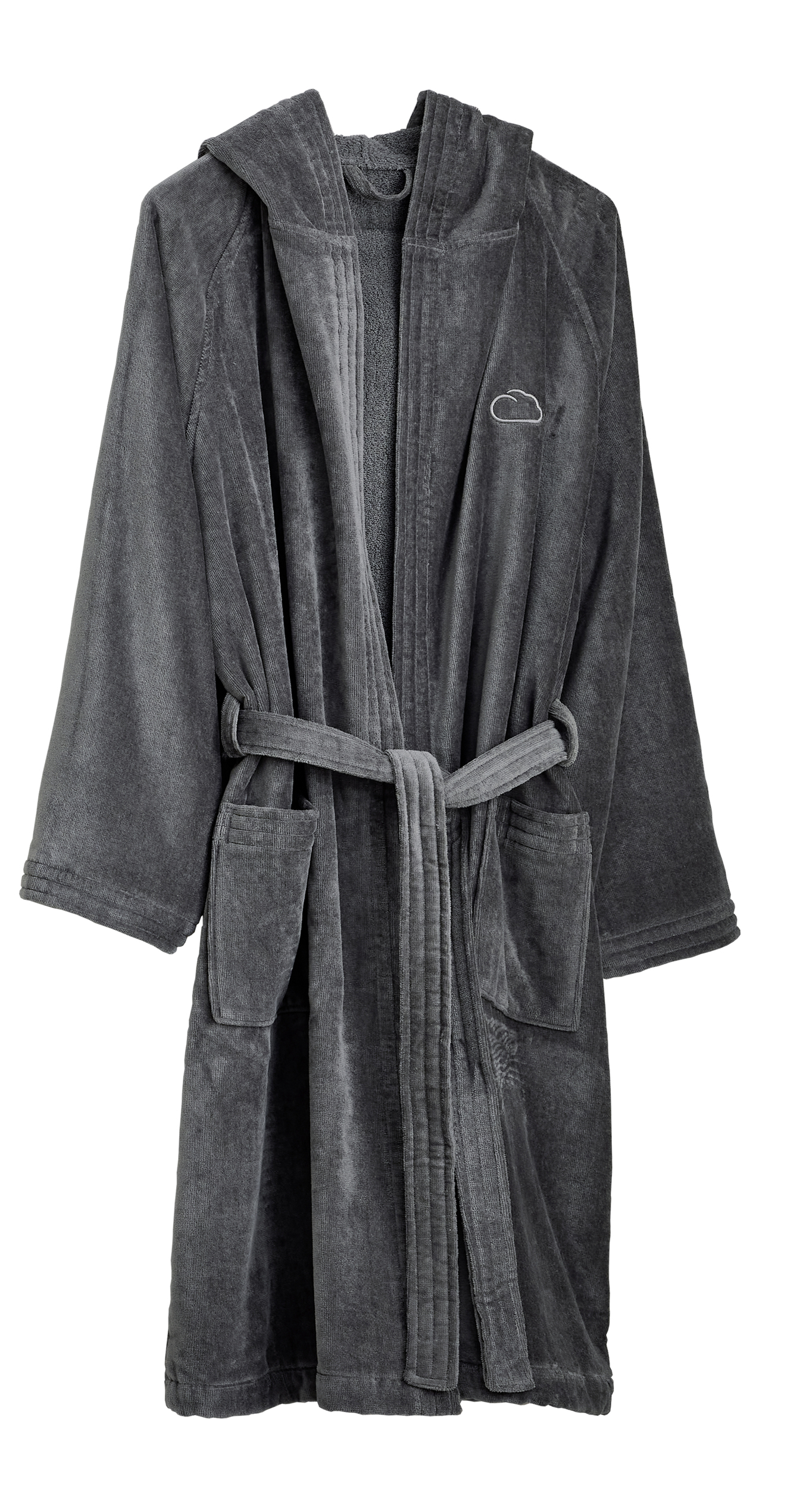 Entdecken Sie den ultimativen Komfort des Bademantels CHILL in Anthrazit. Gefertigt aus 100% Baumwolle, umschmeichelt dieser luxuriöse Bademantel Ihre Haut mit seiner weichen Beschaffenheit und ist dabei komplett vegan, frei von jeglichen tierischen Bestandteilen. Ein dezentes, eingesticktes Wolkenmotiv verleiht ihm eine einzigartige Eleganz. Der Bademantel kommt zudem mit einer bequemen Kapuze und einem Gürtel für optimalen Tragekomfort und perfekte Passform – ideal für gemütliche Stunden daheim oder nach dem Bad. Der Frottierstoff bietet nicht nur eine angenehme Haptik, sondern zeichnet sich auch durch Pflegeleichtigkeit und Langlebigkeit aus.