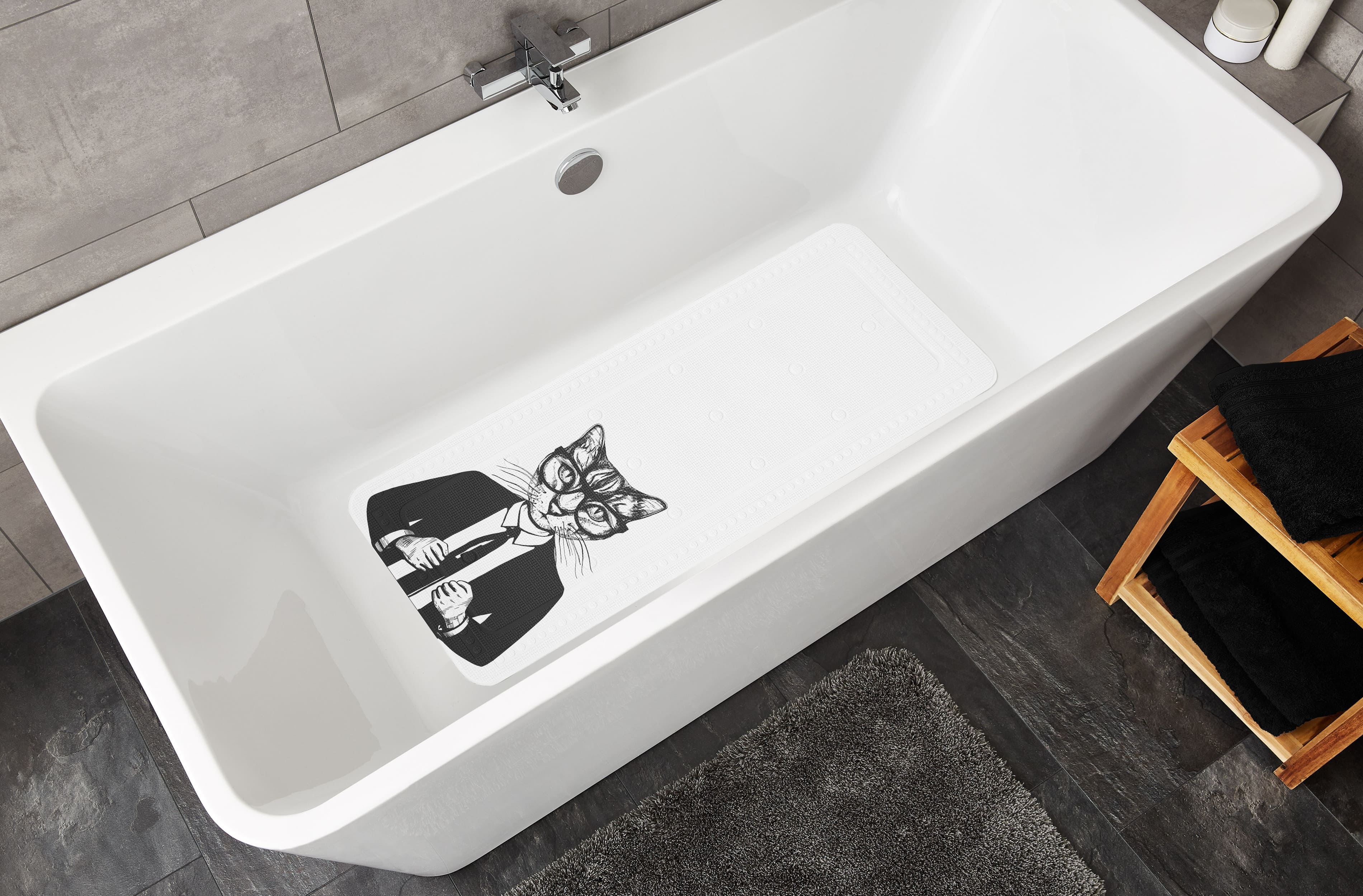 Entdecken Sie die stilvolle und praktische Wanneneinlage "KALLI", die mit ihrem humoristischen Schwarz-Weiß-Print und dem charmanten Katzenmotiv nicht nur optisch anspricht, sondern auch durch Funktionalität überzeugt. Diese Einlage ist aus hochwertigem PVC gefertigt und bietet mit ihrer geriffelten Oberfläche eine verbesserte Rutschfestigkeit in der Badewanne. Die Größe von ca. 36x92 cm passt ideal in Standardbadewannen. Ausgestattet mit zahlreichen Saugnäpfen, bleibt die Matte sicher an ihrem Platz. Zudem ist die Wanneneinlage bei 40 Grad waschbar, was die Reinigung besonders einfach macht. Ein weiteres praktisches Feature ist die Öse zum Aufhängen, die das Trocknen und Verstauen der Matte erleichtert.