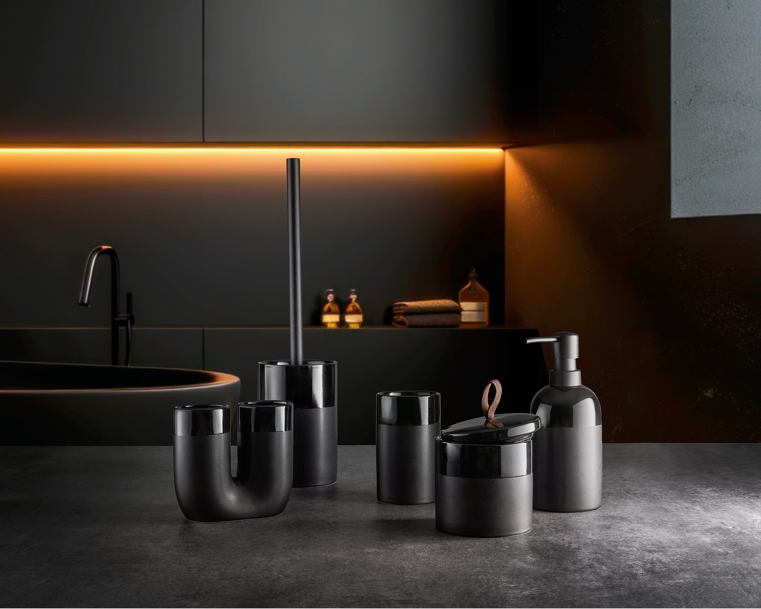 Diese elegante Wattedose aus der Serie DEEP, gefertigt aus hochwertiger Keramik, präsentiert sich in einem ansprechenden Schwarz mit interessanten Matt-Glanz-Anteilen, die jedem Badezimmer einen Hauch von Modernität verleihen. Die Größe von 8.4 cm in Breite und Tiefe sowie 10 cm in Höhe macht sie zu einem praktischen, aber auch stilvollen Accessoire. Die Design-Schlaufe an der Oberseite unterstreicht das einzigartige Aussehen und bietet zusätzliche Funktionalität. Ideal geeignet für die Aufbewahrung von Wattepads, Schmuck oder kleinen Kosmetikartikeln, sorgt diese Wattedose für Ordnung und stilvolle Akzente. Die Reinigung sollte von Hand erfolgen, da das Material nicht für die Spülmaschine geeignet ist.